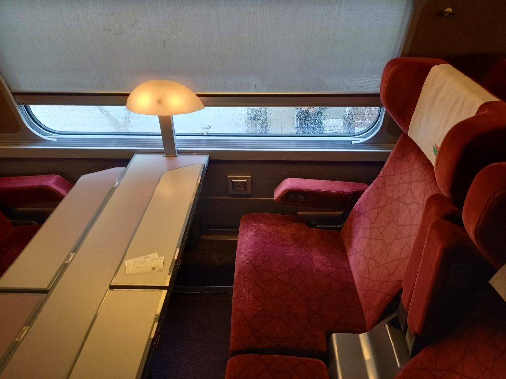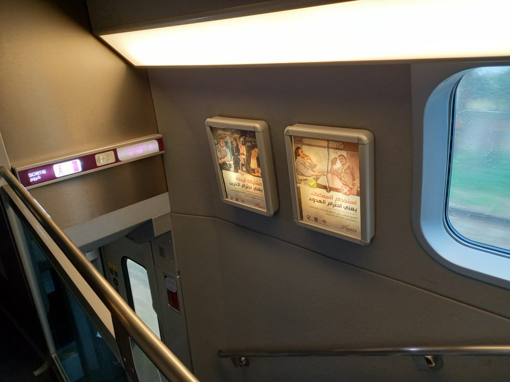 日本の新幹線からこういった設備が消えたのは遠い昔ですが、モロッコでは現役。新幹線もこんな感じだったのでしょうか?でもたしか500系新幹線には売店あと!みたいな設備はありましたよね。私は2007年生まれですが、500系ですら私の中ではこだまで走っている記憶しかありません(笑)