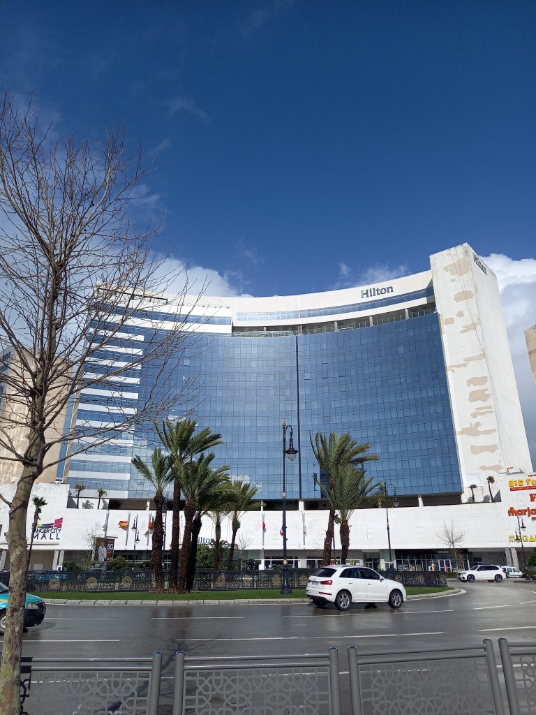 さらに、駅前にはヒルトンが入居している複合ビルがあり、下層階はショッピングモールもあります。この奥にはHilton Gerden Innもあり、意外に外資系ホテルもいくつかあるのがこのタンジェです。ヒルトンに至っては空港のほうの郊外にリゾートホテルも構えています。