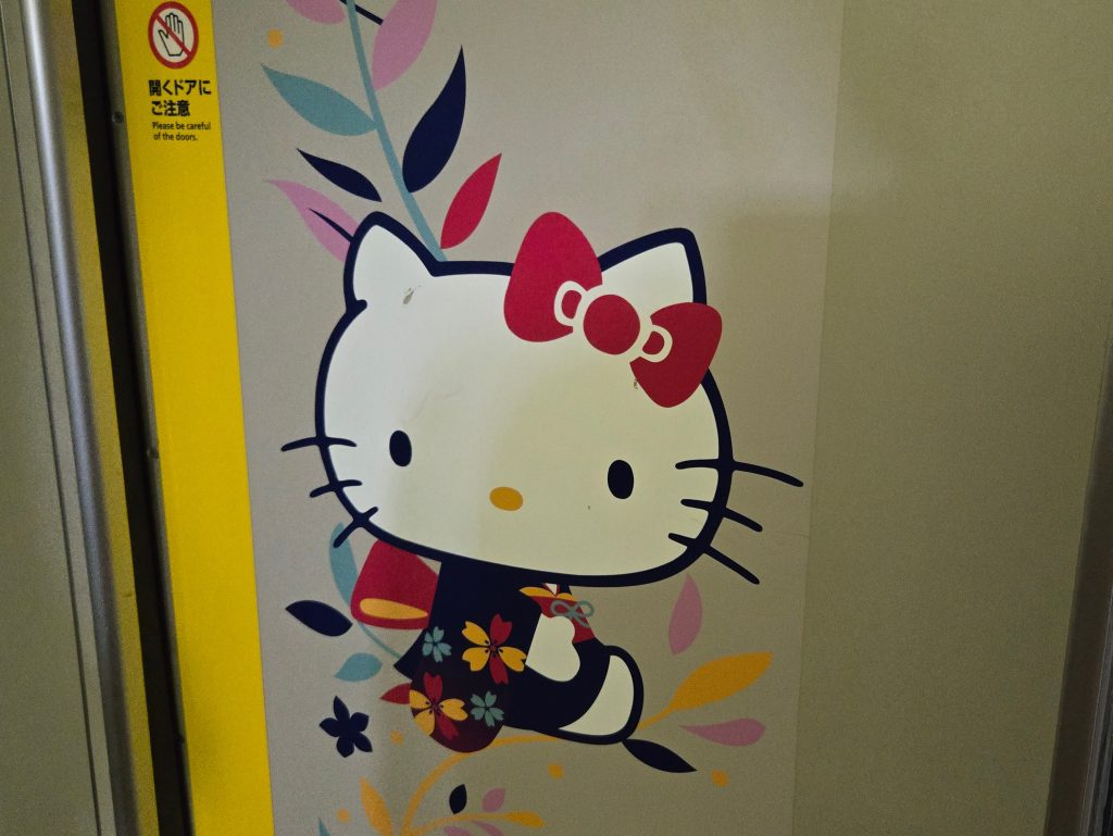 キティちゃんとともに大阪駅へ向かいます。e5489で特急券をとるとチケットレス割が適用、だいぶ安くなりますよ!!!