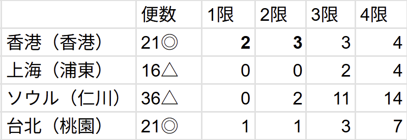 なんといっても香港の1限と2限に間に合う圧倒的な便数です!